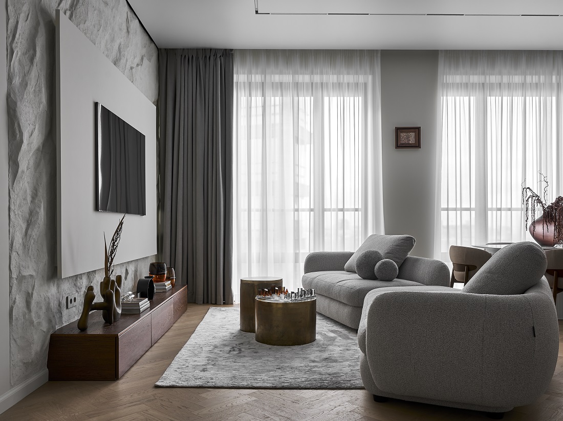 Квартира в ЖК AFI Park Воронцовский в Москве площадью 98 кв.м в минималистичном стиле — это интерьер, где нет ничего лишнего, при этом есть и декор, и детали.